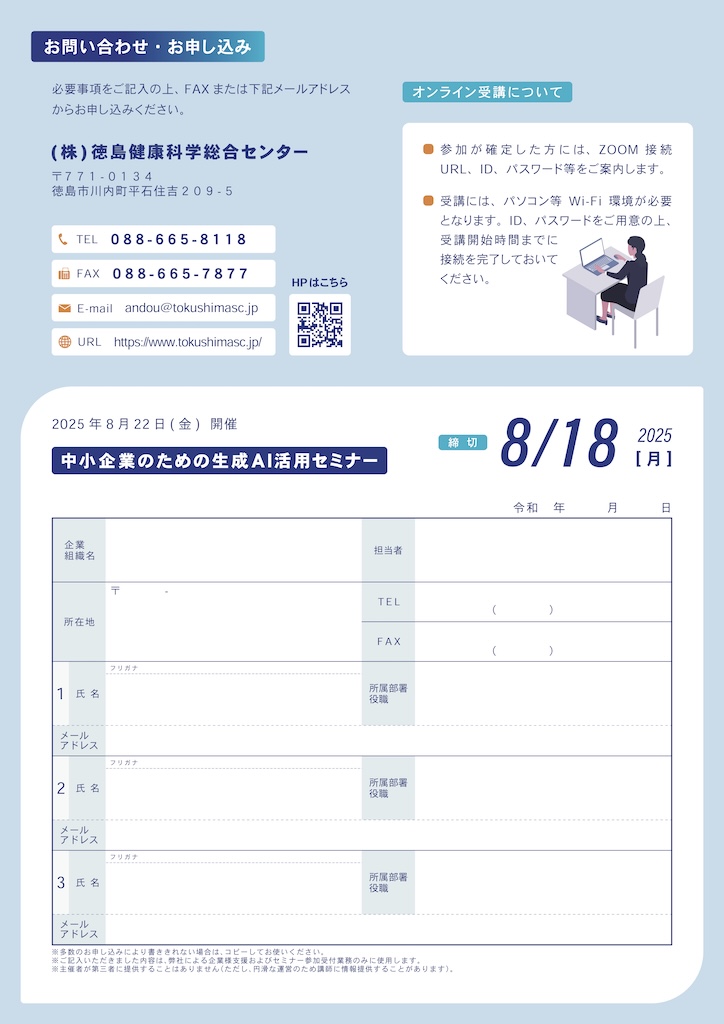 本セミナーは Zoomを使ったオンライン開催 です。徳島県内はもちろん、県外の方でもWi-Fi環境があれば参加できます。費用も無料。